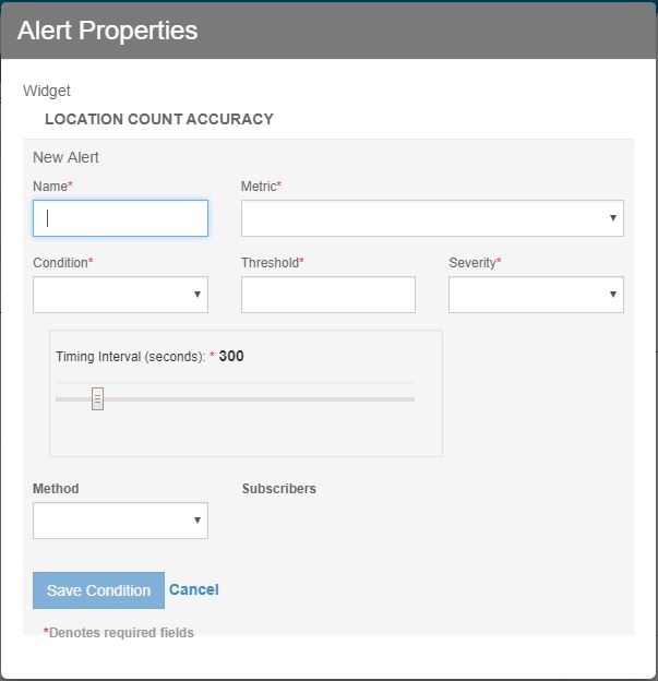 Click ‘New Alert’. The dialog expands to show fields that let you configure an alert.