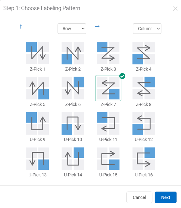 Seleccione el patrón de etiquetado Z-Pick 7, que es el inverso del Z-Pick 3.
