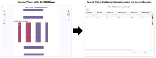 Con esta fuente de datos, los objetos de la capa se completan con valores de datos procedentes directamente de un widget existente. Por ejemplo, los objetos de la capa LOCATION se completan con valores de frecuencia de preparación de pedidos que proceden directamente del widget existente.
