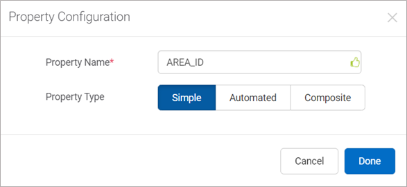 Una propiedad simple se utiliza para asignar un valor ID simple a un objeto de mapa o crear una propiedad compuesta. Configure propiedades sencillas si planea diseñar el mapa manualmente.