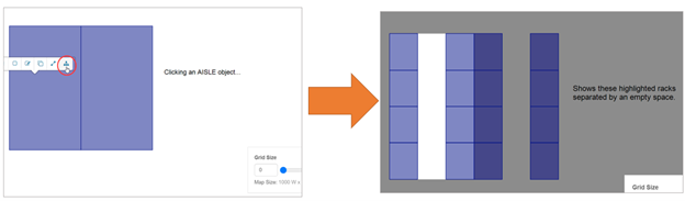 Ejemplo: Subdividir un pasillo en estanterías separadas por un espacio vacío#