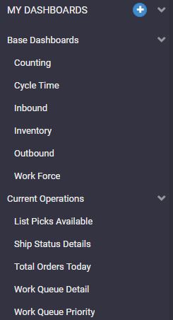 Si va a incluir muchos tableros, piense en cómo los va a organizar. Puede agrupar los tableros en submenús. Un enfoque que podría ser útil es configurar un tablero para cada categoría de widgets (por ejemplo, tiempo de ciclo, rendimiento de salida, inventario).