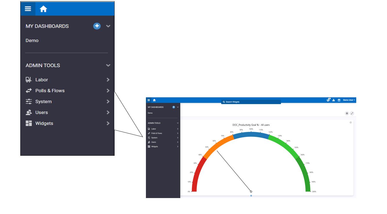 NOTA: Para acceder a estas herramientas, su perfil de usuario debe estar configurado para el acceso. A través de estas herramientas, se puede acceder a las pantallas correspondientes al módulo de trabajo, los widgets y los usuarios. |
