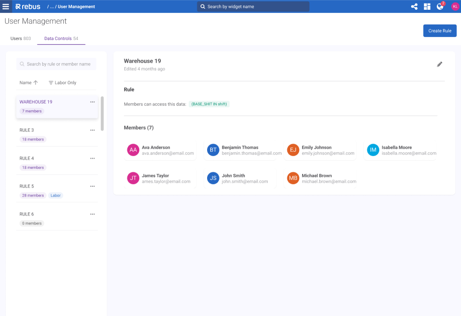 This procedure goes over how to set up a labor maintenance isolation group in Rebus. Labor Data Access Rules let you restrict what a user can see in dropdowns and lists on Labor Maintenance screens. For more background information on labor maintenance isolation groups, see Aislamiento de datos: visualización de datos en función de la pertenencia a un grupo.
