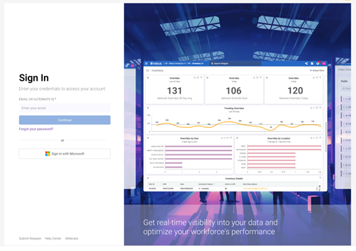 La nueva página de inicio de sesión presenta imágenes que ofrecen una vista previa de la plataforma Rebus y de lo que puede hacer. También cuenta con varias funcionalidades mejoradas: