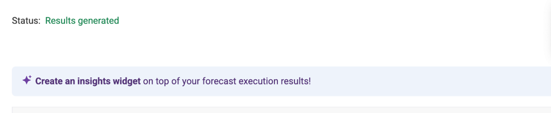 Ahora puede hacer que Rebus genere automáticamente un widget directamente desde la pantalla Previsión de tendencias. Esto facilita y agiliza el uso de los resultados de las previsiones generadas. Anteriormente, después de crear una previsión, tenía que crear un widget desde cero en Widget Builder utilizando los resultados de la previsión. Después de ver los resultados de ejecutar su previsión, haga clic en el nuevo botón Crear un widget Insights.
