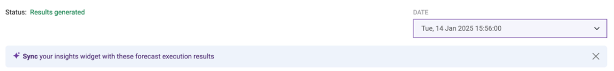 Puede editar este widget en el Diseñador de gráficos para cambiar y personalizar los ajustes. Una vez creado un widget con una ejecución de previsión, puede sincronizar ejecuciones anteriores de esa previsión con su widget. Vuelve a la pantalla de previsión y selecciona el botón Sincronizar que aparece.