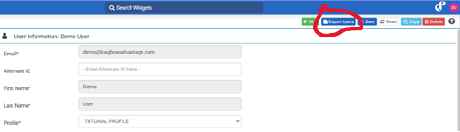 En la barra de navegación superior derecha, seleccione Exportar usuarios. Se descargará una hoja Excel con la información de los usuarios.