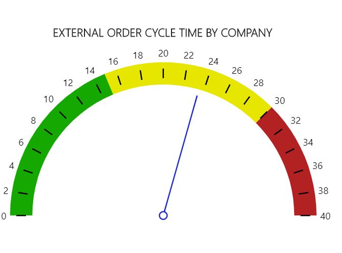 Notas de la exploración en profundidad: Haga clic en el medidor para acceder a Tiempo de ciclo de pedidos externos por almacén.