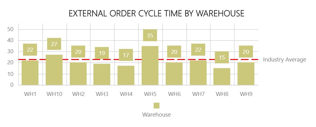 Le permite comparar el tiempo de ciclo promedio de los pedidos externos de todos los almacenes en el intervalo de fechas.