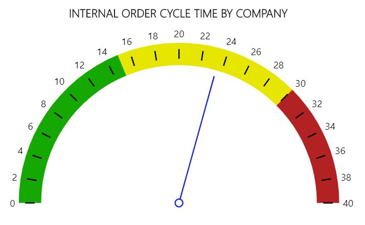 Notas de la exploración en profundidad: Haga clic en el medidor para acceder a Tiempo de ciclo de pedidos internos por almacén.