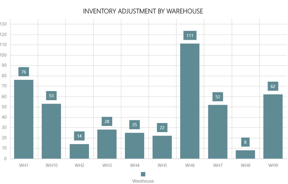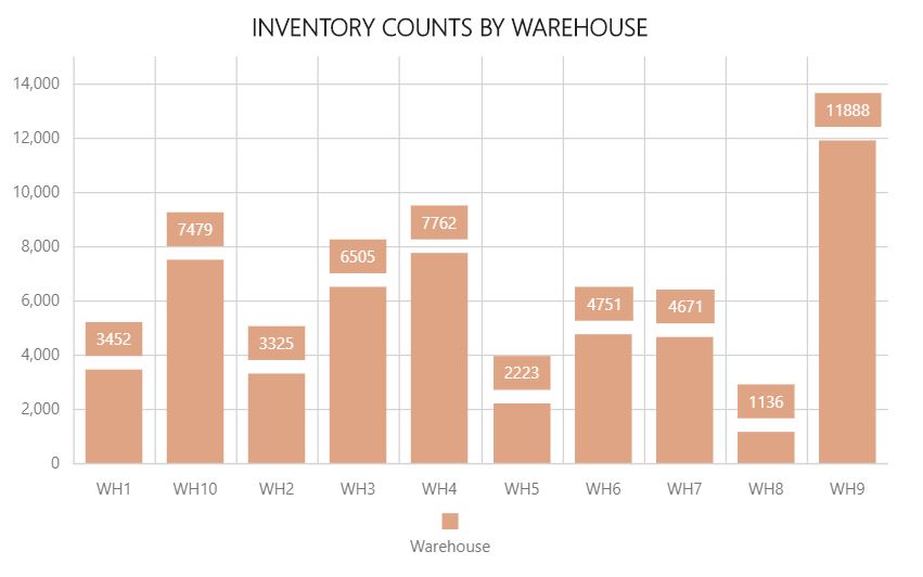 Notas de la exploración en profundidad: Haga clic en la barra para acceder a Recuentos de inventario por almacén.