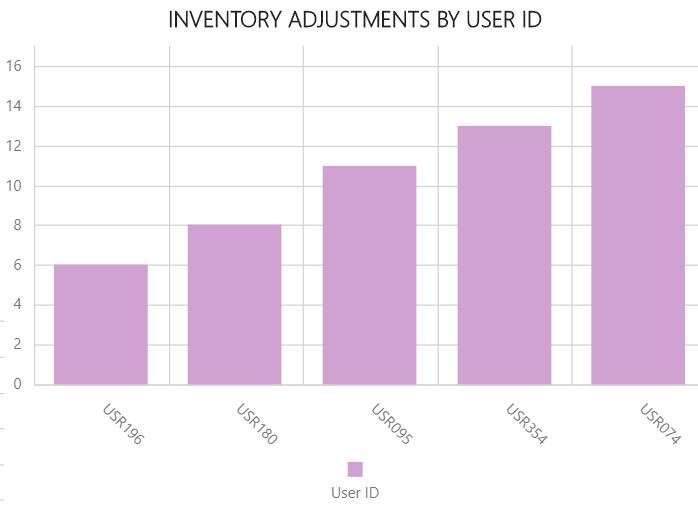 Muestra el número de ajustes de inventario que un Id. de usuario realizó durante un período de tiempo determinado.