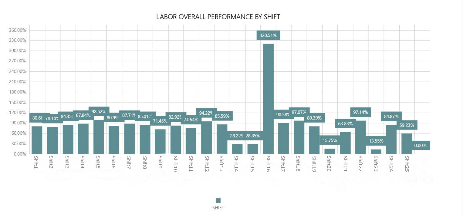 Le permite comparar el desempeño laboral global en todos los turnos de un almacén durante el intervalo de fechas.