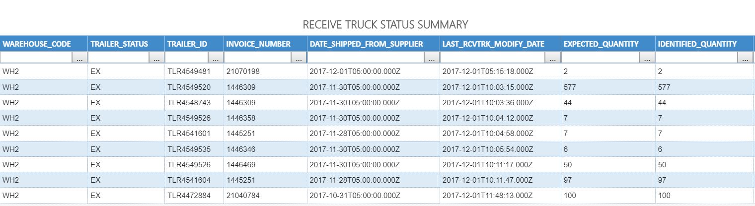 Muestra los detalles de alto nivel de cada remolque de un estado especificado destinado a un almacén determinado.