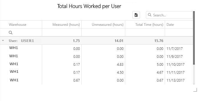 Muestra las horas medidas registradas por cada usuario para cada día durante el intervalo de fechas del widget.