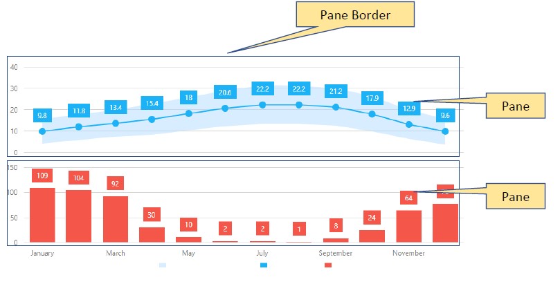 Las franjas son las áreas resaltadas en un gráfico dentro del intervalo de valores definido (mínimo y máximo) para un eje al que pertenecen. En general, las franjas se utilizan para representar visualmente un intervalo de valores detrás de una serie para trazar si los valores de los puntos de la serie están dentro o fuera de ese intervalo.
