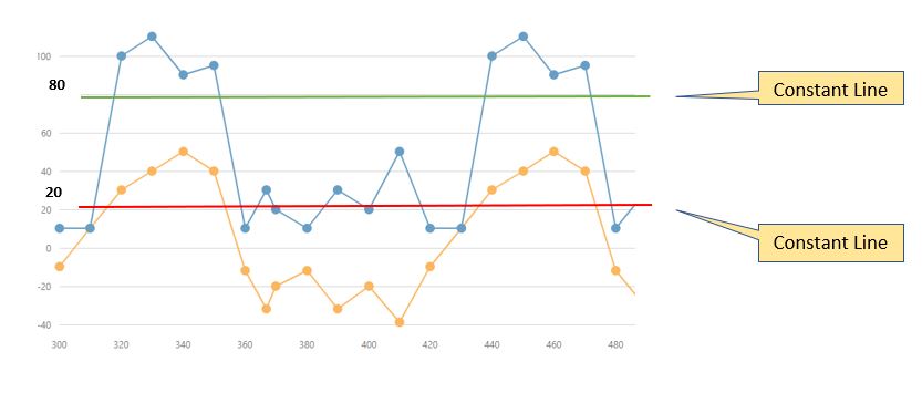 de la propiedad constantLines y, a continuación, haga clic en «Sí» cuando se le pida la confirmación. Las nuevas líneas constantes aparecen enumeradas en el valor predeterminado. Cada línea constante es una copia del valor predeterminado y se indica con su propio número entero.Para cada línea constante, expanda su opción y especifique en qué lugar del eje de valores se dibujará la línea, su color y el ancho de la línea.
