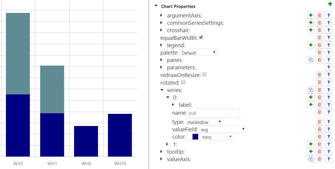 Cambie el valor del tipo de serie al tipo de gráfico preferido, ya sea «stackedbar» o «fullstackedbar».