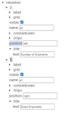 En el panel Propiedades del gráfico, abra la propiedad valueAxis, y copie el eje «0». Se crea una copia del eje «0», el eje «1».