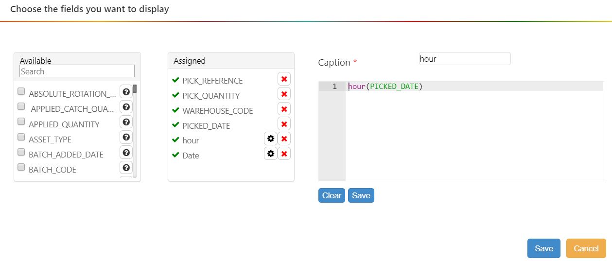 En la etapa Selección de los campos de visualización, configure un campo calculado que utilice la función hour para devolver el valor de la hora del campo de fecha. En el conjunto de datos, el campo calculado de cada registro muestra la hora del día tomada de la marca de tiempo del registro.