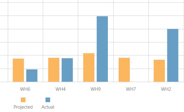 Para convertir un gráfico de barras en un gráfico de barras superpuestas, es decir, en el que se muestran dos o más métricas para el mismo argumento (por ejemplo, las ganancias proyectadas frente a las ganancias reales de 2017) en paralelo, agregue otra serie al widget a través del panel de propiedades del gráfico. Al configurar un gráfico de barras superpuestas, es mejor no poner más de tres series en paralelo.