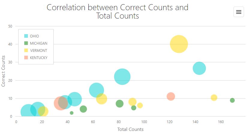 Este gráfico le permite modelar un conjunto de datos con tres dimensiones: las dos primeras se indican mediante coordenadas en los ejes, y la tercera, mediante el tamaño de la burbuja.