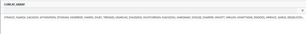 buildArray : Selects a comma-separated set of unique values from the specified field and adds them to an array.