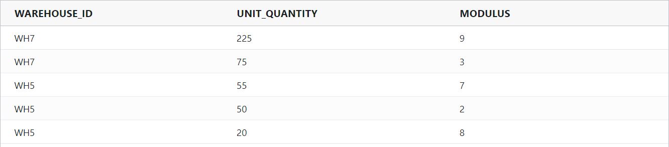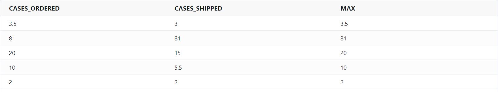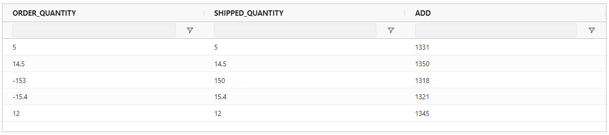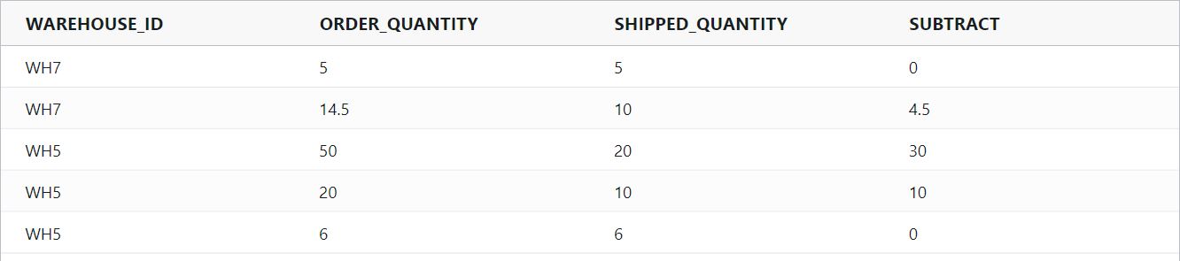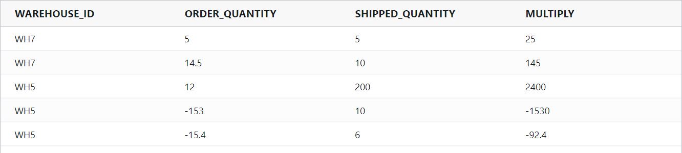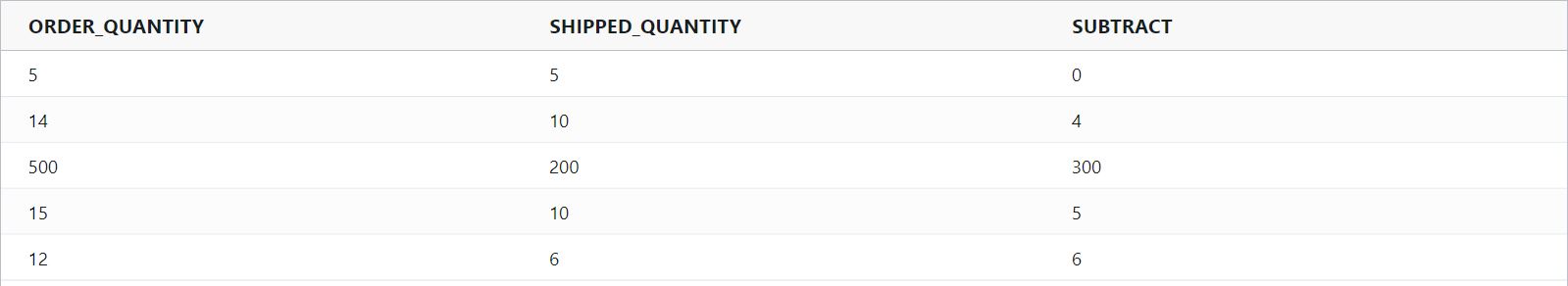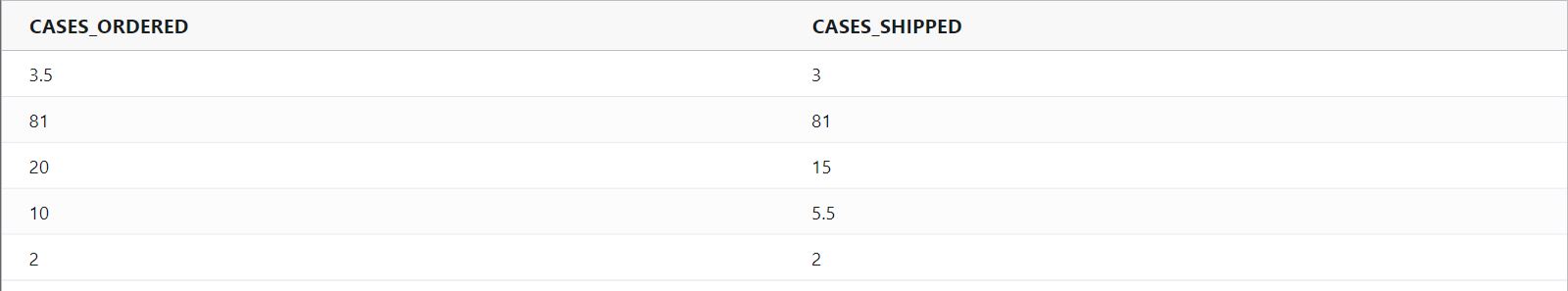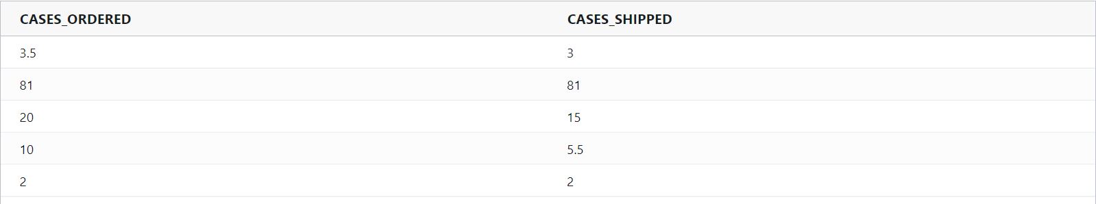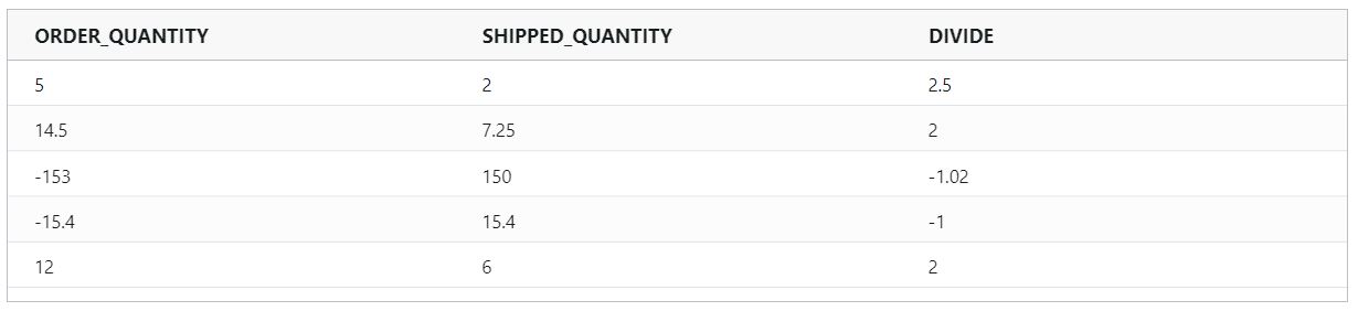 divide(ORDER_QUANTITY, SHIPPED_QUANTITY)Example Input