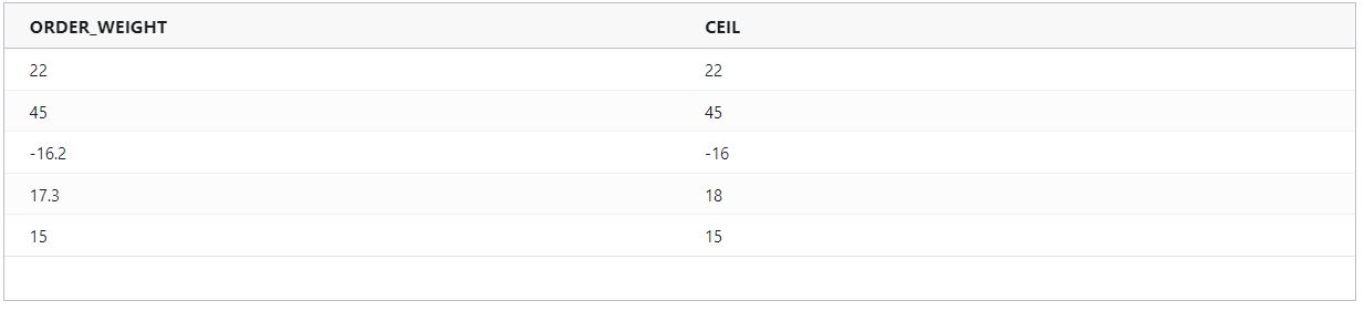 ceil : Returns the smallest integer greater than or equal to the specified number.