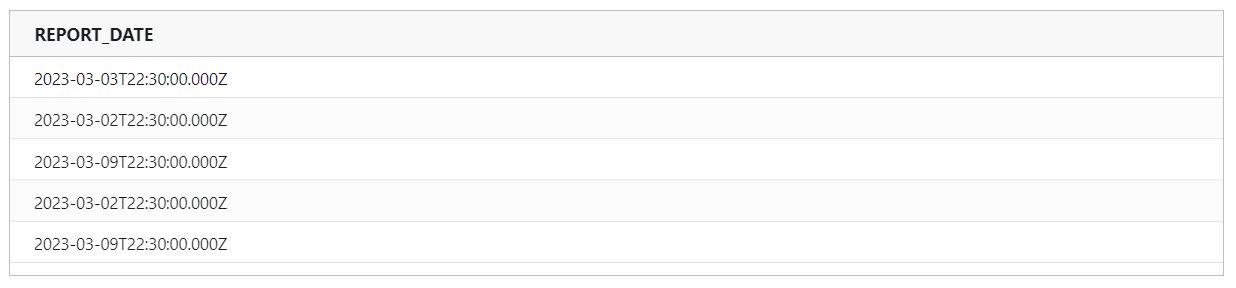 If you specify a weekly range, you have to specify in the third argument which day of the week should be considered the first day of the week.Works the same way as the Relative date parameter option in Widget Properties. For more info, see Editar un parámetro de fecha: avanzado. In the example, the dynamic date range is calculated based on May 2nd, 2023 at 10:00 AM as the current date and time.
