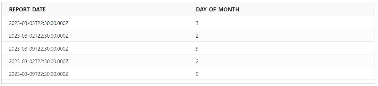dayOfMonth : Returns the day of the month for a date as a number between 1 and 31.