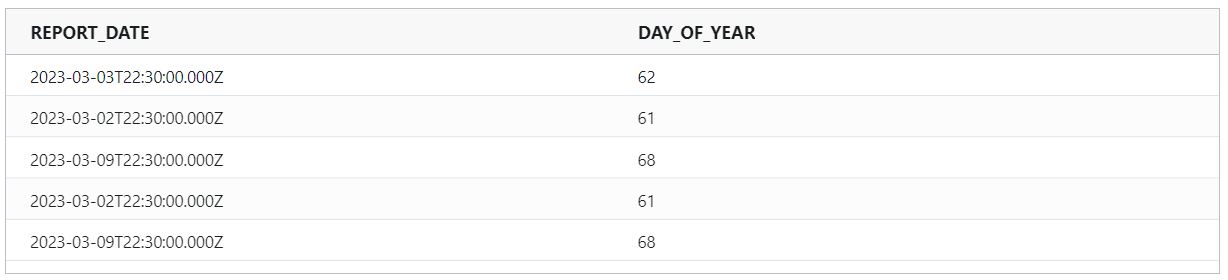 dayOfYear : Returns the day of the year for a date as a number between 1 and 366.