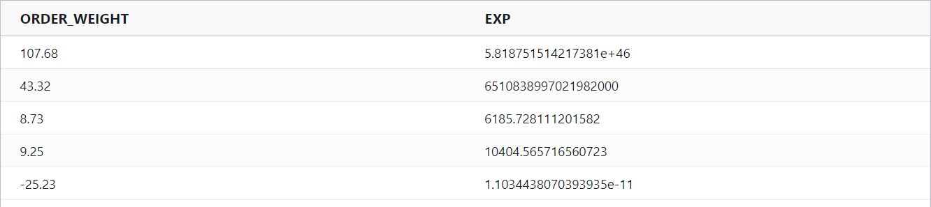 exp : Raises Eulers number (i.e. e ) to the specified exponent and returns the result.