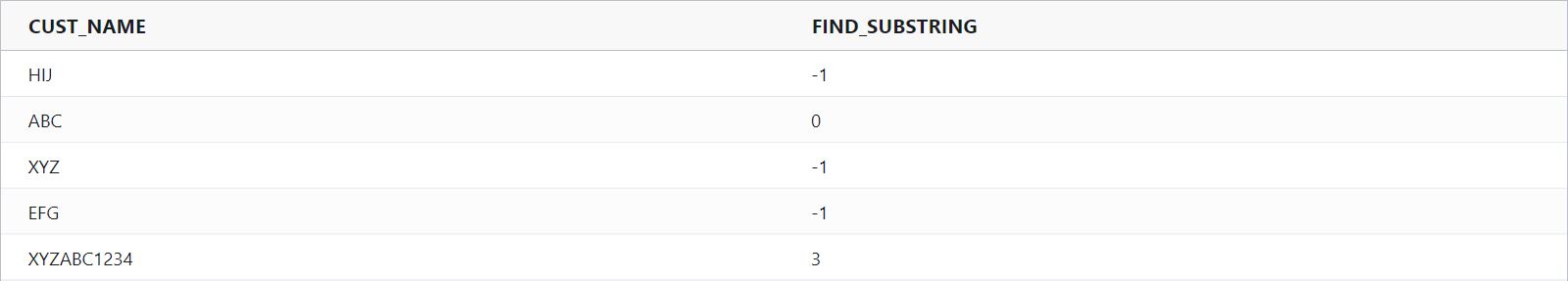 findSubstring : Searches a string for a substring and returns the index (zero-based) of the first instance. If the substring is not found, returns -1.