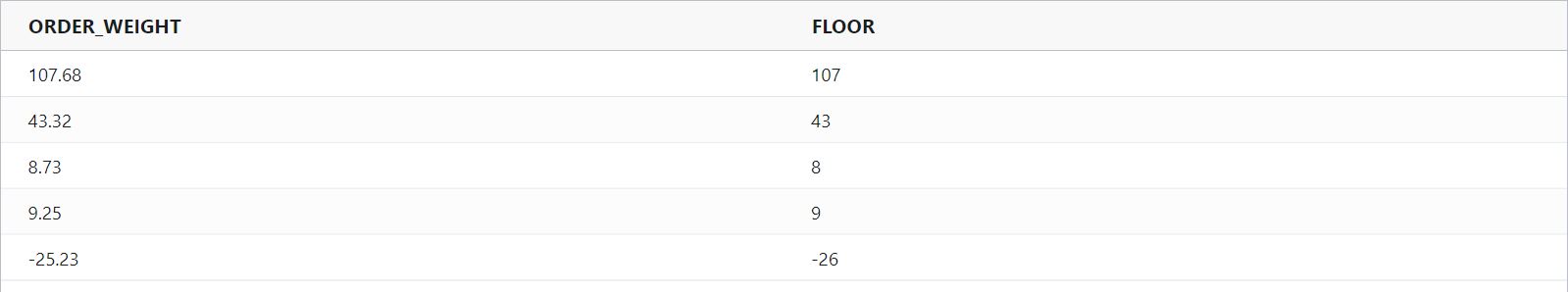 floor : Returns the largest integer less than or equal to the specified number.