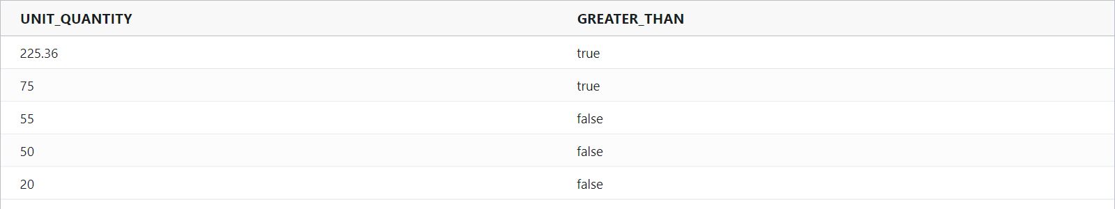 greaterThan : Compares two values and returns: ‘true’ when the first value is greater than the second value, and ‘false’ when the first value is less than or equivalent to the second value.