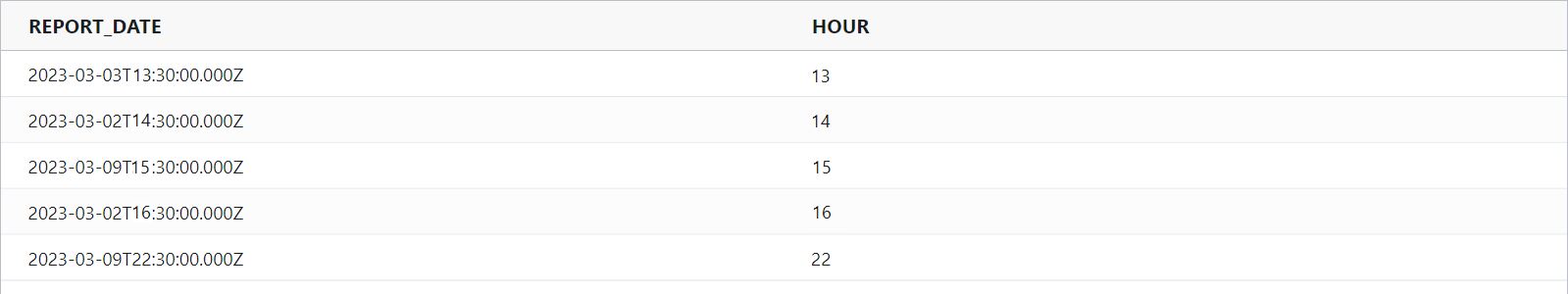 hour : Returns the hour portion of a date as a number between 0 and 23.