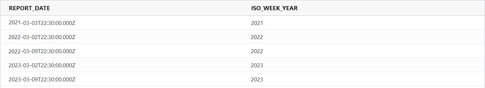 isoWeekYear : Returns the year number in ISO 8601 format.