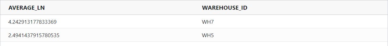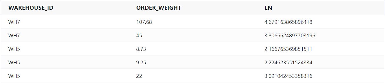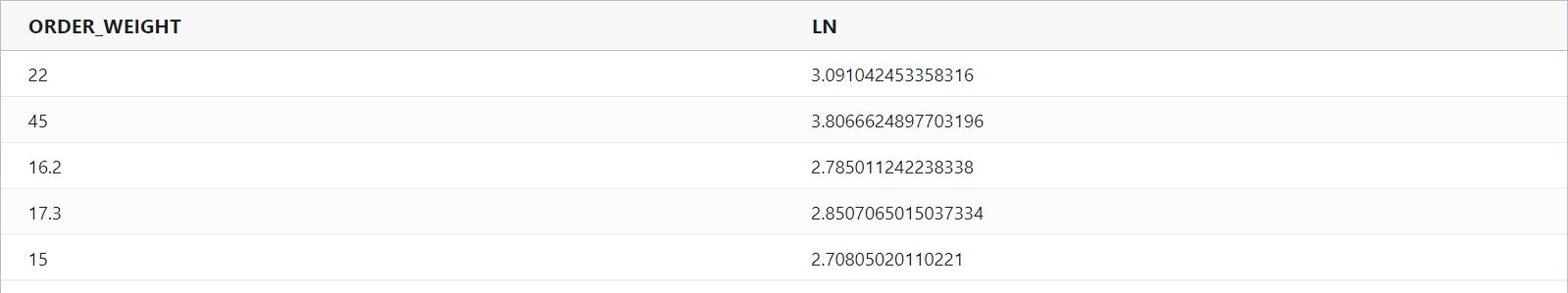 ln : Calculates the natural logarithm ln (i.e log e) of a number and returns the result as a double.
