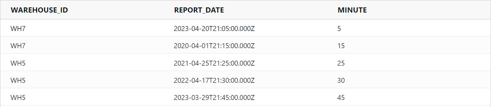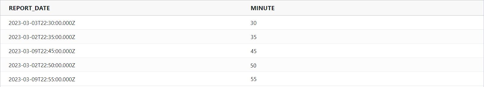 minute : Returns the minute portion of a date as a number between 0 and 59.
