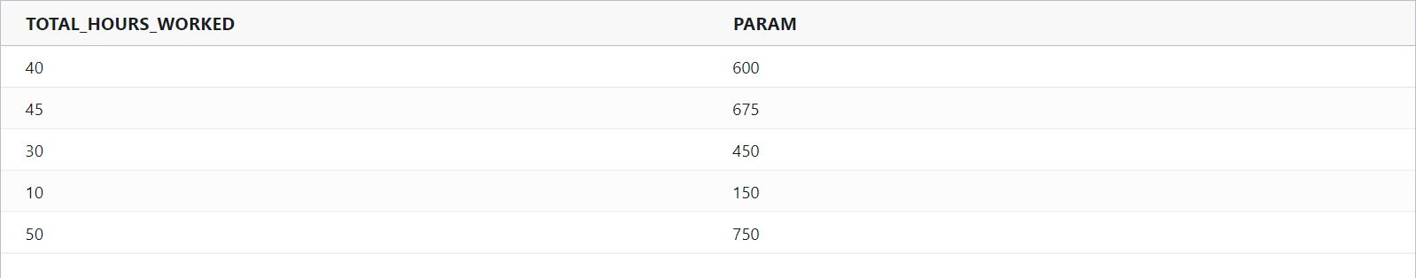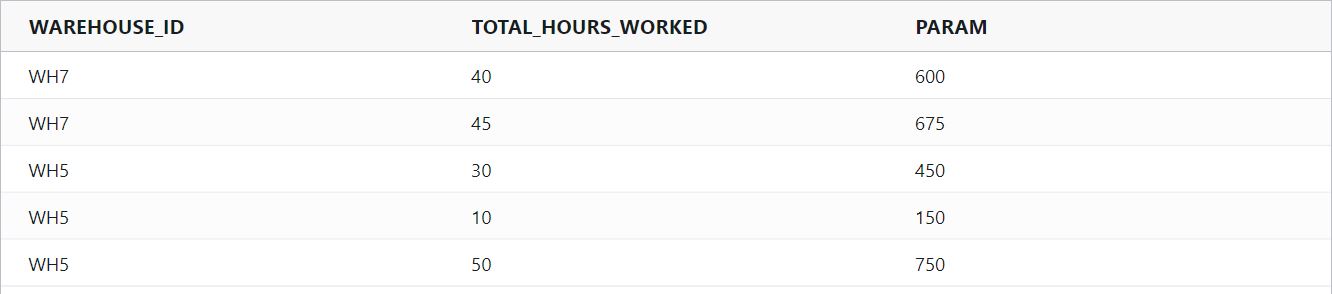 average(multiply(TOTAL_HOURS_WORKED,param(AVG_PAY,15)))Example Input