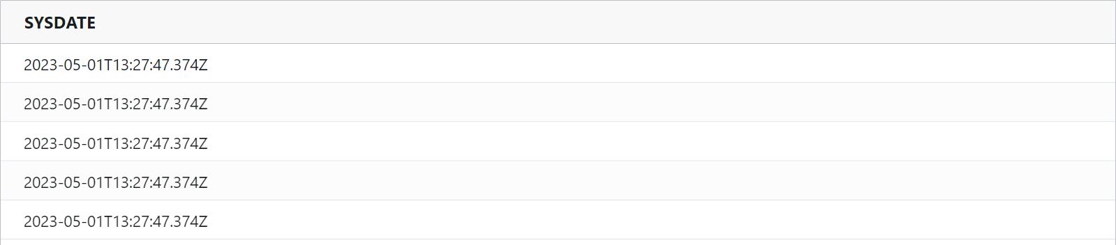 sysdate : Returns the system date in Coordinated Universal Time (UTC) i.e., Greenwich Mean Time.