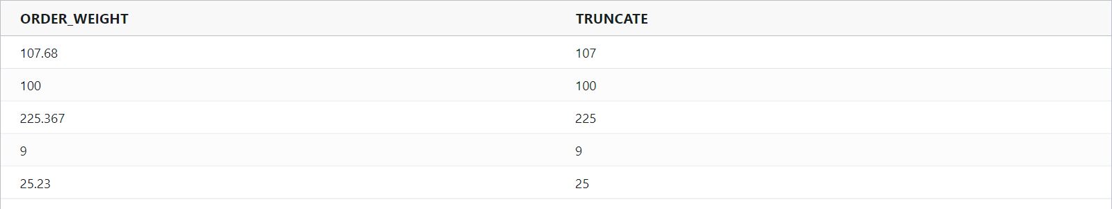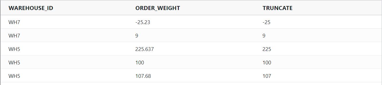 truncate : Truncates a number to its integer.