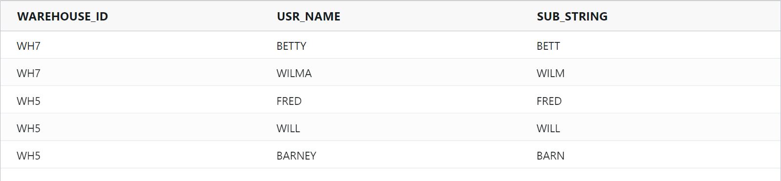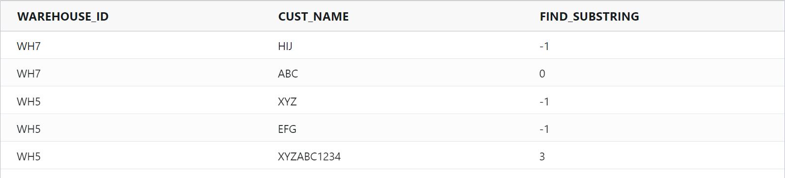 substring : Returns a substring of a string, starting at a specified index position and including the specified number of characters.