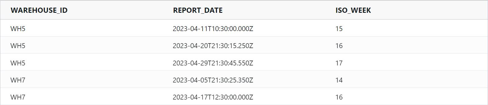 isoWeek : Returns the week number in ISO 8601 format, ranging from 1 to 53.