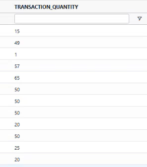 suma los registros que tienen PICK_QUANTITY mayor que 50 y menor que 100. Para cada registro que cumpla la condición, la función devuelve el valor 1; en caso contrario, devuelve el valor 0.
