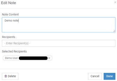A ‘Selected Recipients’ label appears above the list of the note’s recipients.