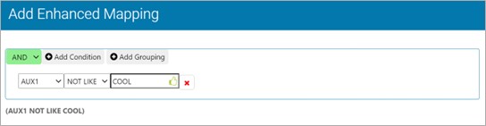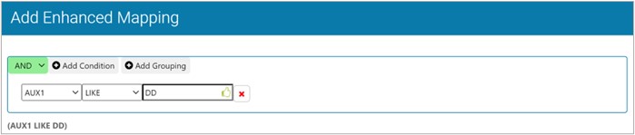 As part of configuring the mapping scheme for an activity group that uses enhanced mapping, we’ve added the LIKE and NOT LIKE operators to let you create more flexible conditions for the AUX fields.