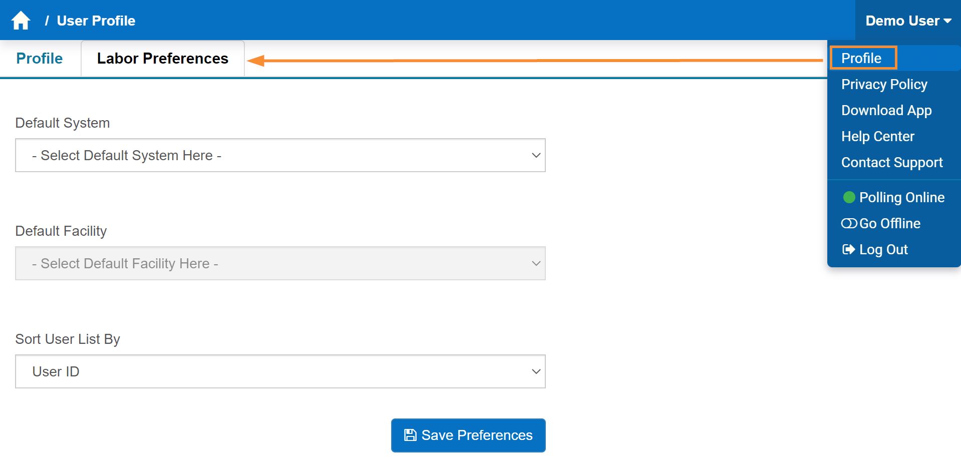 The Labor Module User Preferences have been moved to your Rebus account’s User Profile screen, under the new ‘Labor Preferences’ tab. Previously, they were in a ‘User Preferences’ screen, which has been removed.